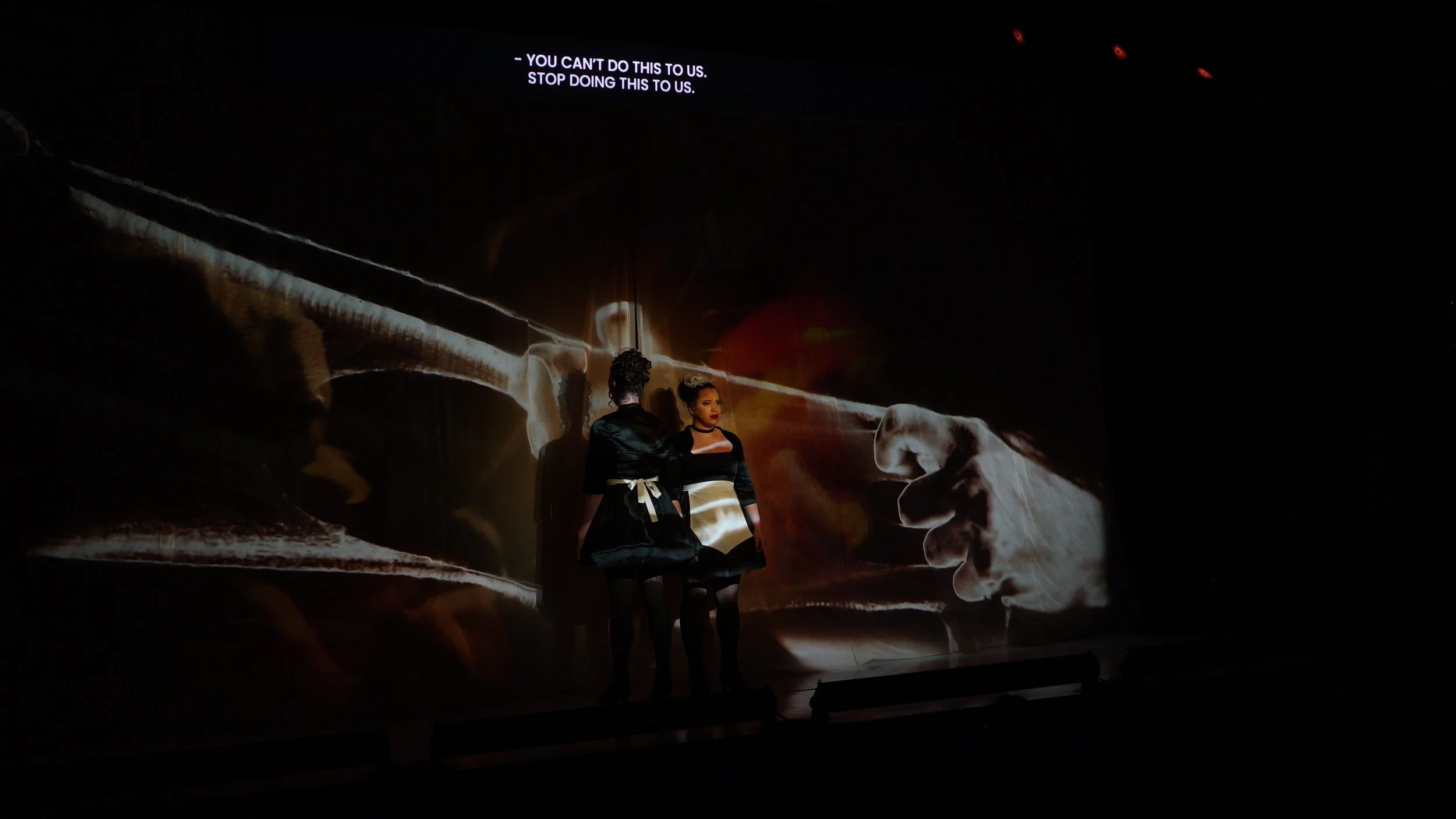 Dans cette adaptation queer et déconstructionniste signée Kévin V. Smith, la tragédie psychosexuelle écrite par Thomas Middleton en 1621 s’actualise en une version bilingue, encadrée par des monologues originaux, intimes et incisifs, portés par deux narratrices transféminines. Le texte de Middleton prend vie dans un espace aux costumes luxuriants et à la scénographie minimaliste, accompagné d’un design vidéo évocateur et d’une création sonore de musique concrète, tumultueuse et persistante. Les monologues, mêlant souvenirs d’enfance, expériences de genre, violences quotidiennes et terreurs collectives, tissent un cadre à la fois poétique et politique, créant un dialogue constant entre l’époque de Middleton et notre présent — vibrant, militant, immédiat.